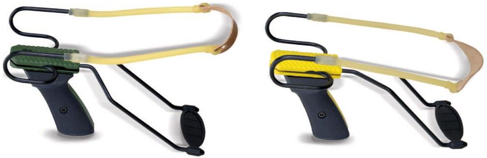 Classic folding-type slingshot. Model "David" has no wristbrace, model "Target" has a foldable brace.